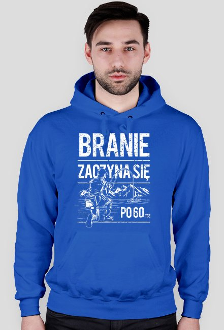 Bluza na wypad na ryby - idealny pomysł na śmieszny prezent dla wędkarza z napisem "Branie zaczyna się po 60'tce". Jeśli masz ojca, wujka, bądź dziadka, który jest zapalonym fanem wędkarstwa to na pewno ucieszy się z tej bluzy.