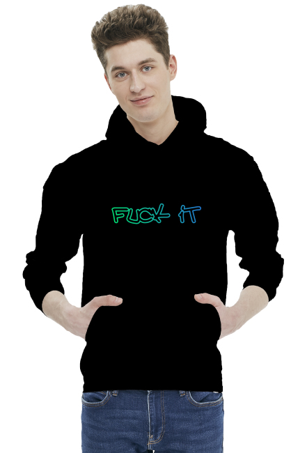 Bluza męska z kapturem, dostępna w czterech kolorach z dużym napisem "Fuck it", dla każdego kto lubi się wyróżnić.