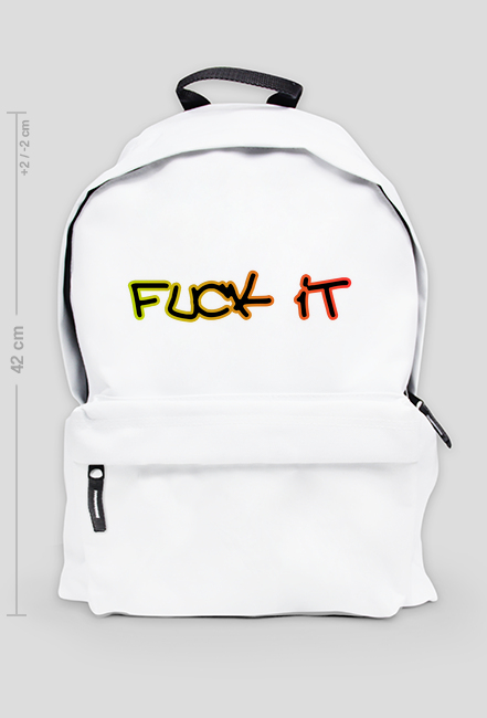 Duży plecak dostępny w kolorze czarnym i białym z dużym napisem "Fuck it", dla każdego kto lubi się wyróżnić.