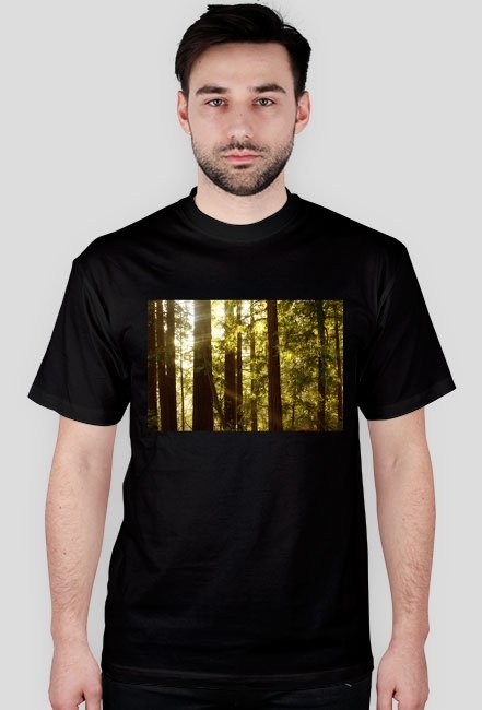 Model ma na sobie koszulkę w rozmiarze M. Maksymalne wymiary nadruku to 30cm (szerokość)