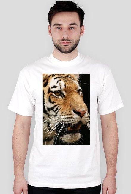Model ma na sobie koszulkę w rozmiarze M. Maksymalne wymiary nadruku to 30cm (szerokość)