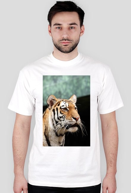 Model ma na sobie koszulkę w rozmiarze M. Maksymalne wymiary nadruku to 30cm (szerokość)