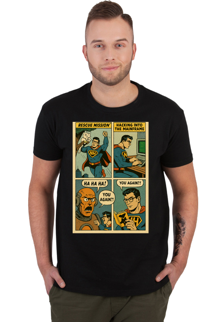 Nie chowaj swojej pasji – noś ją z dumą. Koszulka „COMICS SUPER NERD” to Twój strój bojowy w świecie pełnym przeciętności.