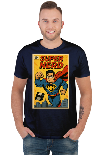 Nie chowaj swojej pasji – noś ją z dumą. Koszulka „SUPER NERD” to Twój strój bojowy w świecie pełnym przeciętności.