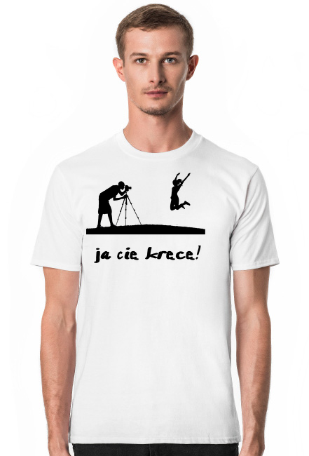 Koszulka kamerzysty - męska koszulka dobrej jakości z napisem "Ja cię kręcę!" Oryginalny, śmieszny t-shirt, unikalna grafika. Koszulka kamerzysty to świetny pomysł na prezent. Wykonana ze 100% bawełny, przewiewna, nie rozciąga się po praniu. Koszulka dla operatora kamery, filmowca, amatora filmu, dla niego, dla chłopaka, dla mężczyzny, dla taty.