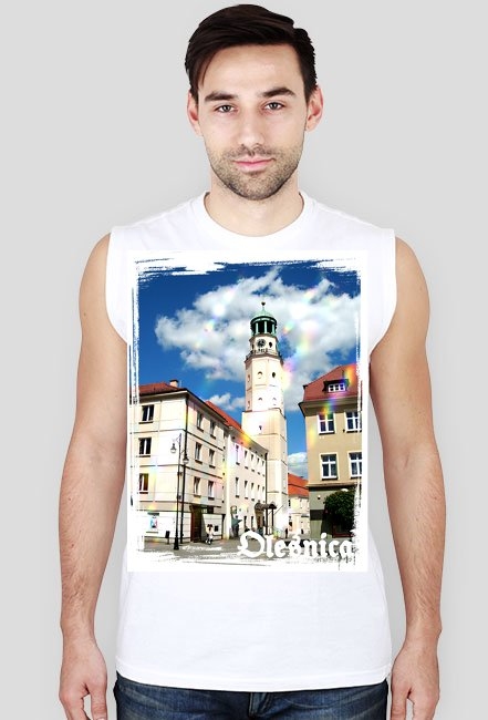 Koszulka męska bez rękawów biała Oleśnica Rynek Ratusz.