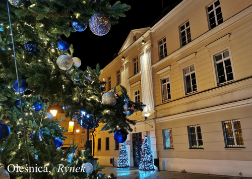 Plakat poziomy A2 Oleśnica Rynek choinka.