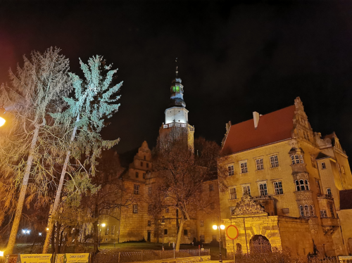 Plecak worek z nadrukiem Oleśnica Zamek nocą.