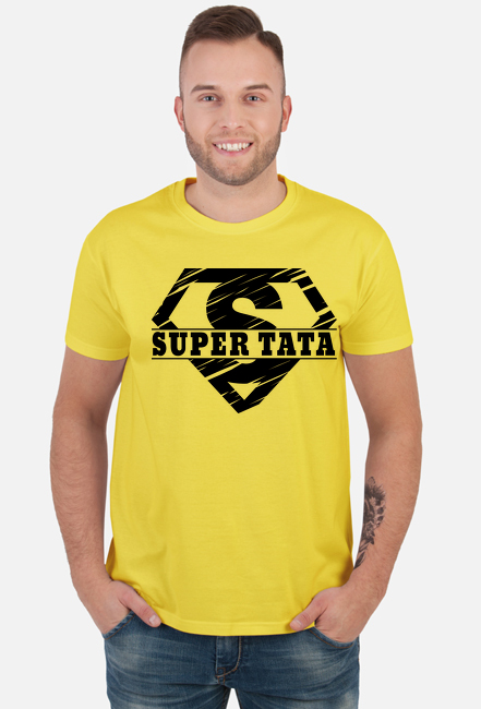 Nie nosi peleryny, ale ratuje dzień codziennie — to Super Tata! Koszulka z kultowym symbolem inspirowanym Supermanem i dumnym napisem to idealny prezent dla ojca, który ma supermoce: cierpliwość, siłę i serce większe niż kryptonit.