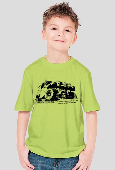 Koszulka JEEP JEST DZIKI YOUNG stworzona specjalnie dla serii ON THE ROAD jest idealna dla młodych entuzjastów offroadowego klimatu.