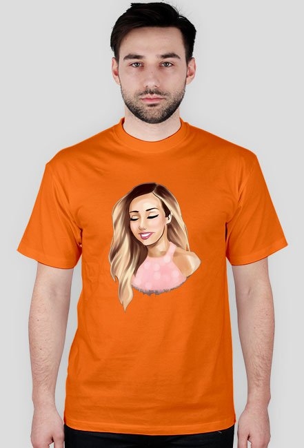 Model ma na sobie koszulkę w rozmiarze M. Maksymalne wymiary nadruku to 30cm (szerokość)