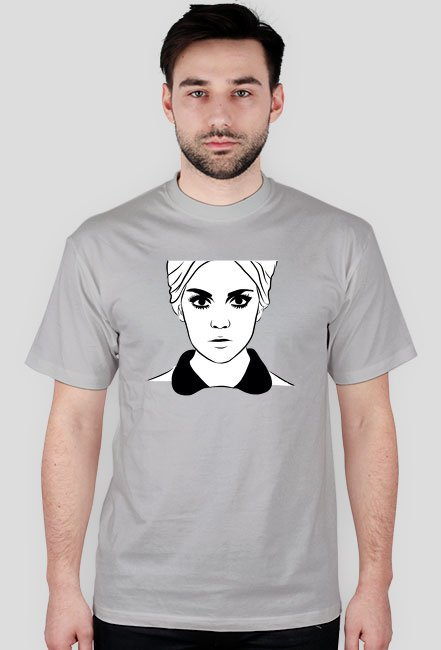 Model ma na sobie koszulkę w rozmiarze M. Maksymalne wymiary nadruku to 30cm (szerokość)