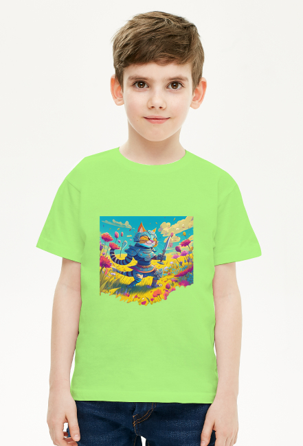 Ta koszulka to idealny wybór dla wszystkich miłośników kotów, którzy cenią zarówno piękno natury, jak i siłę i waleczność. Nosząc ją, możesz wyrazić swoją pasję do kotów oraz poczuć się pewnie i odważnie, jak ten waleczny kot na łące pełnej kwiatów.