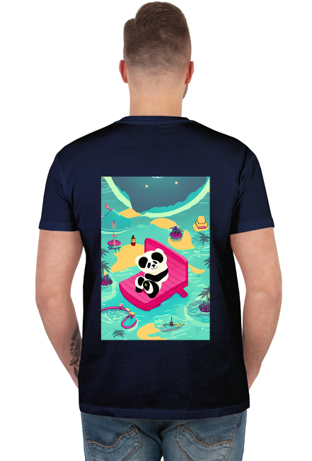 Ta urocza koszulka przenosi Cię w tropikalne zakątki, gdzie słońce świeci jasno, a leniwa panda wyleguje się na kolorowym leżaku, oddając się beztroskiej relaksacji i wakacyjnym przyjemnościom. Jest to pejzaż, który wprowadza nas w stan błogiego lenistwa i spokoju.