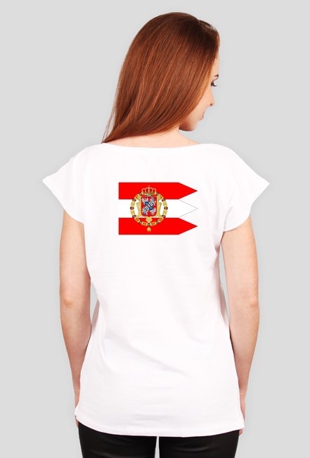 Koszulka z nadrukiem herbu i chorągwi Rzeczpospolitej Obojga Narodów.