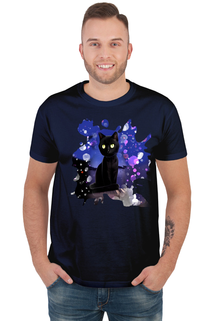 Męska koszulka - "Czarny kot siędzący na dachu" , która przypadnie do gustu każdemu miłośnikowi kotów! ♥