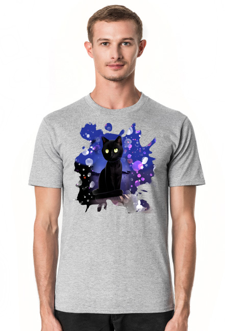 Męska koszulka - "Czarny kot siędzący na dachu" , która przypadnie do gustu każdemu miłośnikowi kotów! ♥