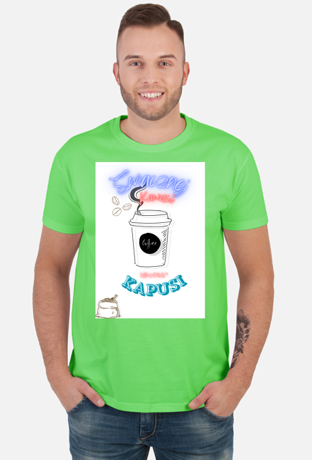 Czy to poranna kawa w ulubionej kawiarni, czy wieczorna herbatka w domowym zaciszu, nasza koszulka będzie doskonałym towarzyszem każdej kawowej chwili. Niech świat zna Twoją kawową pasję, sięgnij po naszą koszulkę "Smacznej Kawusi... Kapusi" i dodaj odrobinę kawowego humoru do swojej garderoby!