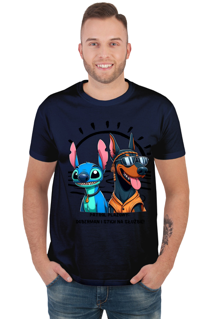Patrol plażowy: Doberman i Stich na służbie! SKU: koszulka-K01_cyjkraku_4810783