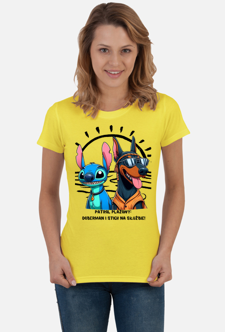 Patrol plażowy: Doberman i Stich na służbie! SKU: koszulka-damska-K02_6dlcbdou_4810775