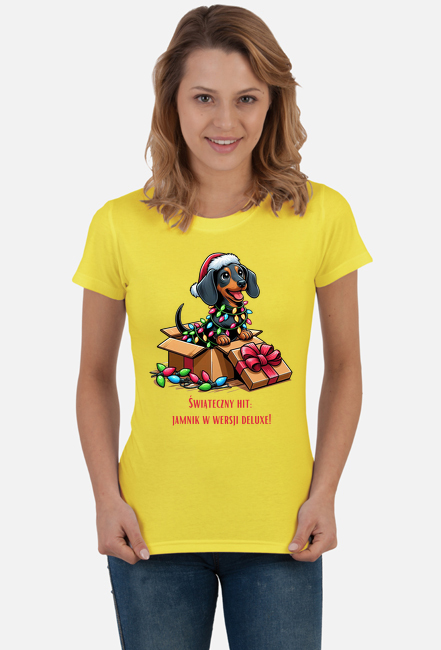 Świąteczny hit: jamnik w wersji deluxe SKU: koszulka-damska-K02_qgl729dd_4811714