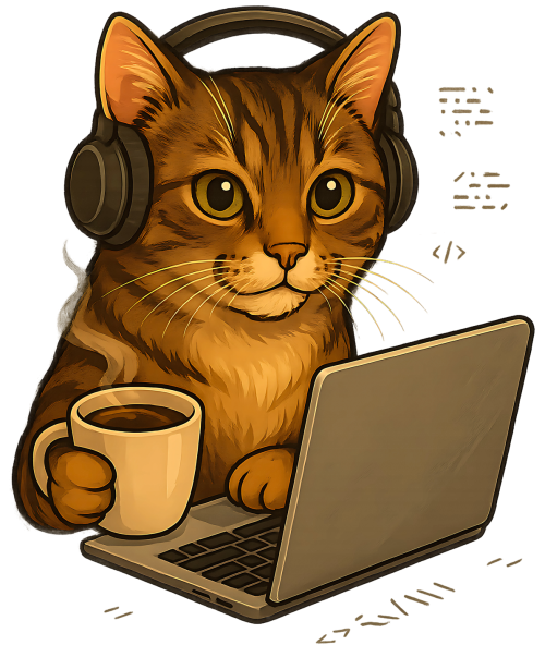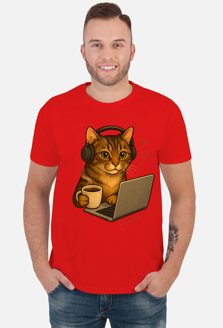 Kot z kawą i słuchawkami na uszach SKU: koszulka-K01_ci0617ij_4852384
