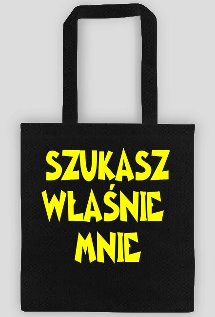 Klasyczna ekotorba na ramię z napisem SZUKASZ WŁAŚNIE MNIE, dostępne w różnej wersji kolorystycznej.