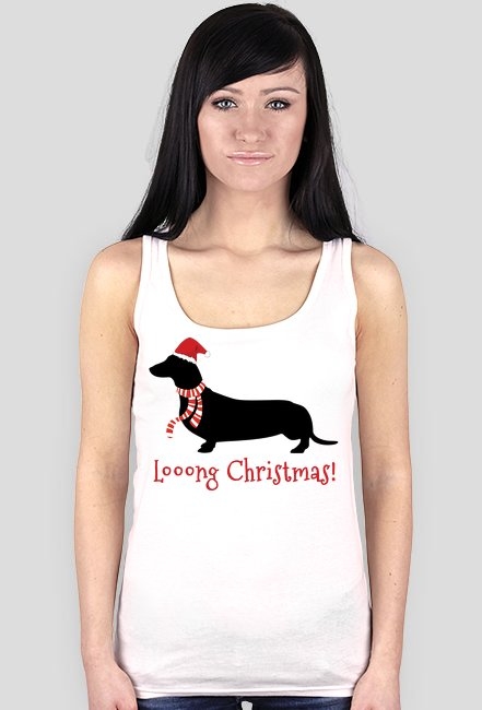 Damski świąteczny top - biały - Jamnik SKU: koszulka-damska-tank-top_a4rm1ltg_1797067