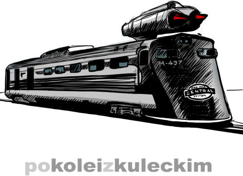 M-497 Black Beetle powstał w 1966 roku jako przebudowa tradycyjnego wagonu motorowego na... odrzutowy. Dwa silniki turboodrzutowe General Electric J47-19 rodem ze strategicznego bombowca B-36 Peacemaker pozwoliły na osiągnięcie rekordowej prędkości 296 km/h! Projekt zarzucono, my wrzucamy go na gadżety jako symbol połączenia kolei z lotnictwem. O innych takich połączeniach opowiedziano w odcinku 133 cyklu Po kolei z Kuleckim. O rekordach prędkości opowiada odcinek 92.