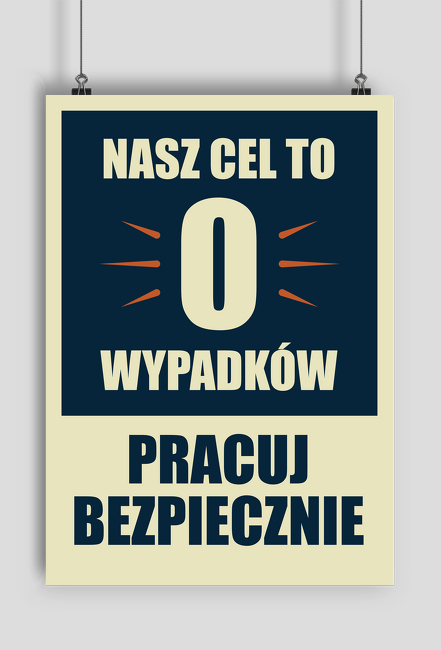 Plakat BHP w stylu retro z hasłem przewodnim: Pracuj bezpiecznie. Nasz cel to 0 (zero) wypadków.