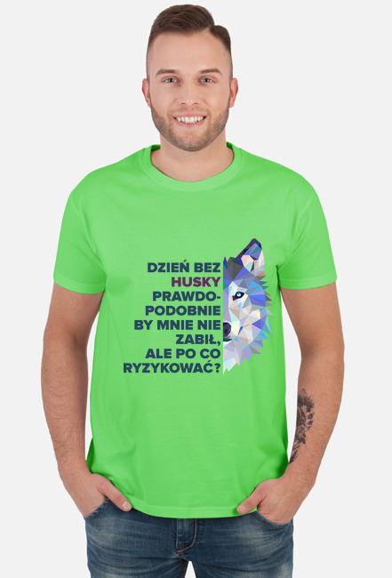 Koszulka dla miłośników husky i ich niezłomnego charakteru! Napis "Dzień bez husky prawdopodobnie by mnie nie zabił, ale po co ryzykować?", to humorystyczne wyznanie o niezwykłej więzi między Tobą a Twoim czworonożnym towarzyszem. Wygodny krój i miękka bawełna sprawiają, że ta koszulka idealnie sprawdzi się na co dzień i podkreśli Twoją miłość do tej wyjątkowej rasy.