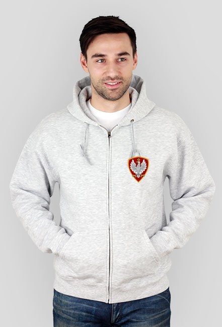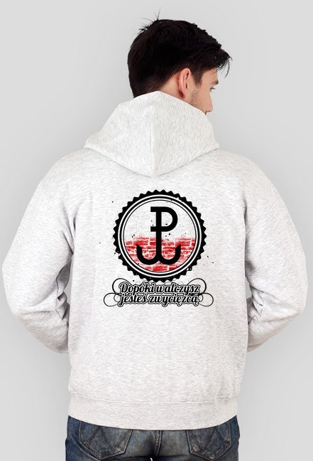 Męska bluza z kapturem, rozpinana pochodząca z kolekcji Dopóki walczysz, jesteś zwycięzcą – dewiza Aureliusza Augustyna z Hippony. Z przodu bluzy biały orzeł w złotej koronie. Z tyłu bluzy znak Polski Walczącej - symbol walki o niepodległość naszego państwa.