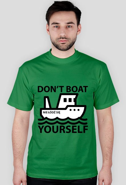 Koszulka z napisem "Don't Boat Yourself", co w dosłownym tłumaczeniu oznacza "Nie Łódź Się".
