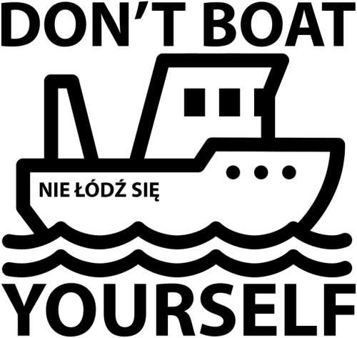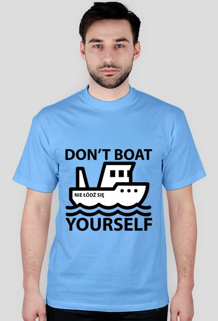 Koszulka z napisem "Don't Boat Yourself", co w dosłownym tłumaczeniu oznacza "Nie Łódź Się".