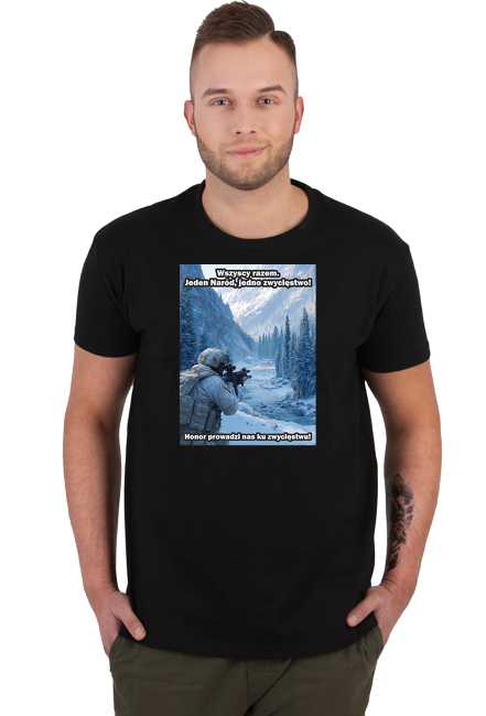 Klasyczna męska koszulka bawełniana z nadrukiem w technologi DTG.