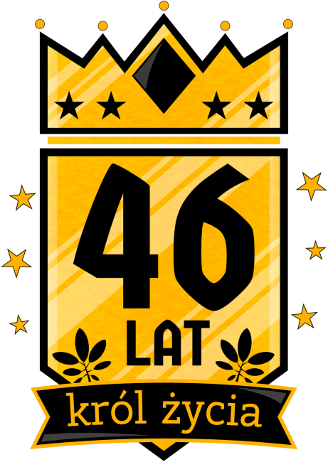 Męska koszulka na 46 urodziny z nadrukiem - Korona i napis "46 Lat Król Życia". Okazjonalny t-shirt na prezent. Koszulka z krótkim rękawem dla chłopaka, dla mężczyzny na 46-te urodziny. Urodzinowy prezent dla syna, dla chłopaka, dla wnuka, dla taty, dla ojca, dla wujka, dla dziadka, dla kuzyna, dla kolegi, dla faceta, dla przyjaciela, dla osoby garściami korzystającej z życia i lubiącej humor na czterdzieste szóste urodziny. Czterdzieści sześć lat to wyjątkowy wiek dla mężczyzn bo mężczyźni wiedzą, że życie zaczyna się po czterdziestce. Czterdziestolatek to człowiek korzystający z pełni życia więc czterdziestka do fantastyczny wiek.
