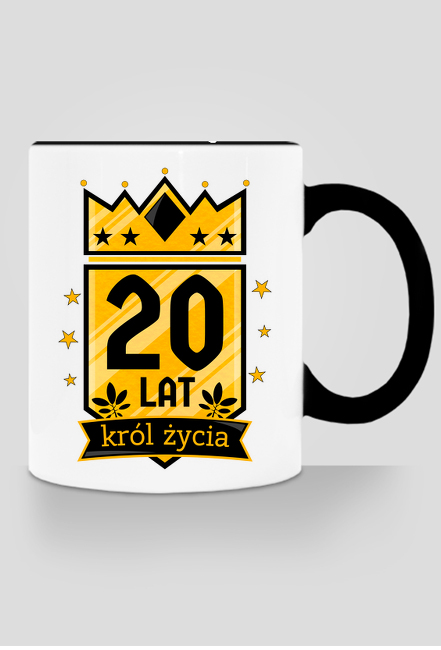 Kubek na 20 urodziny z nadrukiem. Korona i napis "20 Lat Król Życia". Nadruk dwustronny. Okazjonalny kubek na prezent na dwudziestkę. Kubeczek dla chłopaka, dla mężczyzny na 20-ste urodziny. Urodzinowy prezent dla syna, dla chłopaka, dla wnuka, dla kolegi, dla przyjaciela, dla osoby garściami korzystającej z życia. Dwadzieścia lat to wyjątkowy wiek.