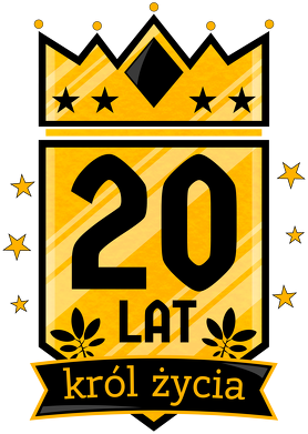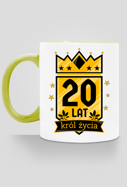 Kubek na 20 urodziny z nadrukiem. Korona i napis "20 Lat Król Życia". Nadruk dwustronny. Okazjonalny kubek na prezent na dwudziestkę. Kubeczek dla chłopaka, dla mężczyzny na 20-ste urodziny. Urodzinowy prezent dla syna, dla chłopaka, dla wnuka, dla kolegi, dla przyjaciela, dla osoby garściami korzystającej z życia. Dwadzieścia lat to wyjątkowy wiek.