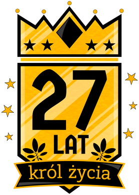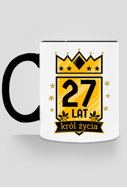 Kubek na 27 urodziny z nadrukiem - Korona i napis "27 Lat Król Życia". Nadruk dwustronny. Okazjonalny kubek na prezent na dwudzieste siódme urodziny. Kubeczek dla chłopaka, dla mężczyzny na 27-me urodziny. Urodzinowy prezent dla syna, dla chłopaka, dla wnuka, dla kolegi, dla przyjaciela, dla osoby garściami korzystającej z życia i lubiącej humor. Dwadzieścia siedem lat to wyjątkowy wiek dla mężczyzn.