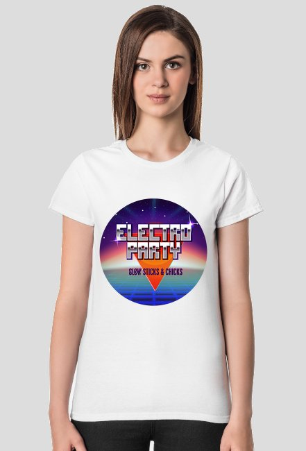 Pixel Art - Napis retro Electro Party - arcade - damska koszulka SKU: koszulka-damska_mnmrljdi_3650363