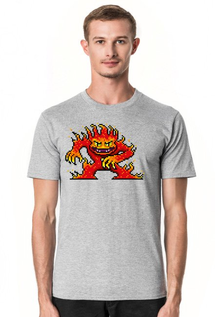 Pixel Art - Ognista postać - styl retro - grafika inspirowana grą Minecraft - męska koszulka SKU: koszulka-K01_swi7epzt_3650600