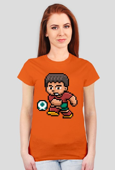 Pixel Art - piłkarz - styl retro - 8 bit - grafika inspirowana grą Minecraft - damska koszulka SKU: koszulka-damska_lclrt3v6_3651504