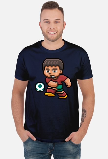 Grafika przedstawia piłkarza. Styl inspirowany grą Minecraft i wieloma innymi nawiązującymi do dawnych lat. Grafika w stylu retro Pixel Art. Idealny prezent na każdą okazje lub aby sprawić sobie nostalgiczny, śmieszny, oryginalny upominek ;)