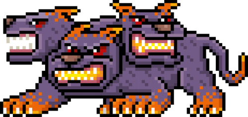 Grafika przedstawia Potwora Cerbera, mityczne stworzenie broniące bram Hadesu, inspirowanego grą Minecraft, Heroes of might & Magic. Wzór stylizowany na grafikę i styl retro Pixel Art. Idealny prezent na każdą okazje lub aby sprawić sobie nostalgiczny upominek.
