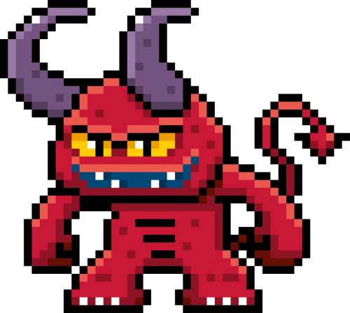Grafika przedstawia diabelskiego Potwora, chochlika stworzenie chcące zaprowadzić chaos i nieład, inspirowanego grą Minecraft, Heroes of might & Magic, Diablo i wieloma innymi. Wzór stylizowany na grafikę i styl retro Pixel Art. Idealny prezent na każdą okazje lub aby sprawić sobie nostalgiczny, złowieszczy upominek ;)