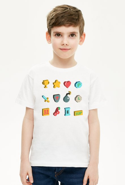 Pixel Art - Retro Ikony z gier - 8 bit - chłopiec koszulka SKU: koszulka-chlopiec-new_7wtj6toy_3649028