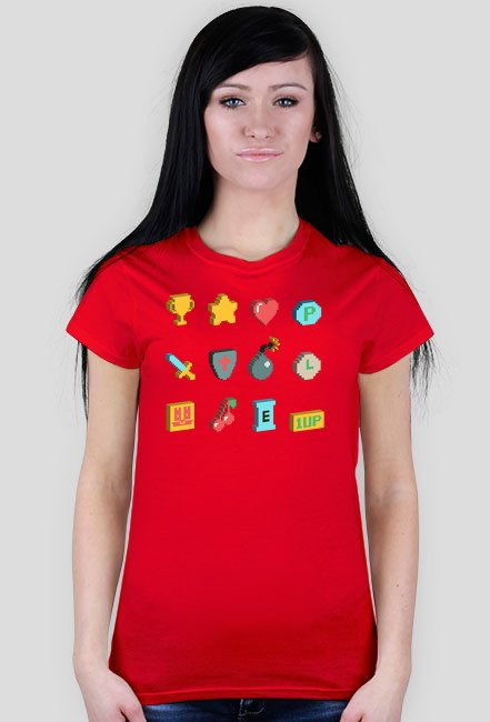 Pixel Art - Retro Ikony z gier - 8 bit - damska koszulka SKU: koszulka-damska_gmjj009y_3649066