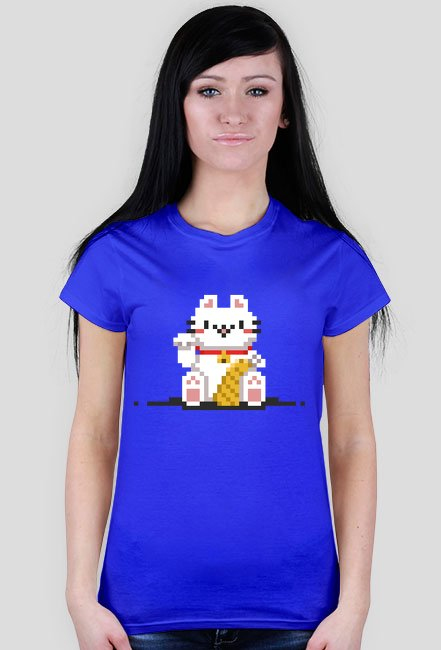 Pixel Art - Retro postać szczęśliwego kota - 8 bit - damska koszulka SKU: koszulka-damska_qapbpdl7_3649101