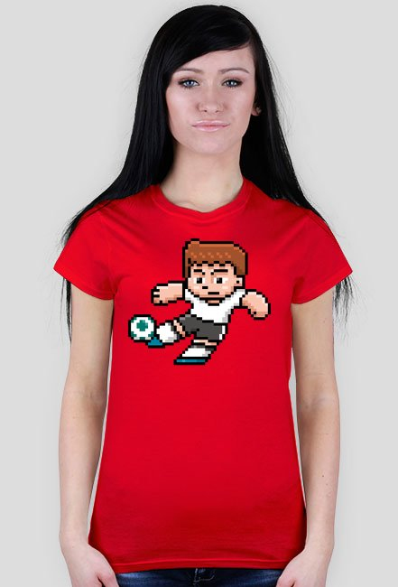 Pixel Art - strzelający piłkarz - styl retro - 8 bit - grafika inspirowana grą Minecraft - damska koszulka SKU: koszulka-damska_t4yq2bbh_3651536