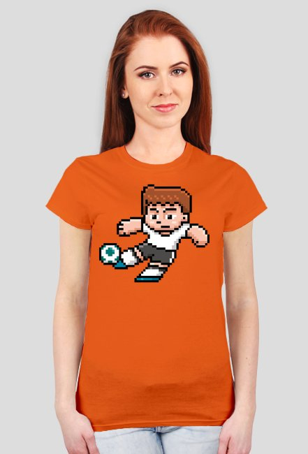 Pixel Art - strzelający piłkarz - styl retro - 8 bit - grafika inspirowana grą Minecraft - damska koszulka SKU: koszulka-damska_t4yq2bbh_3651536